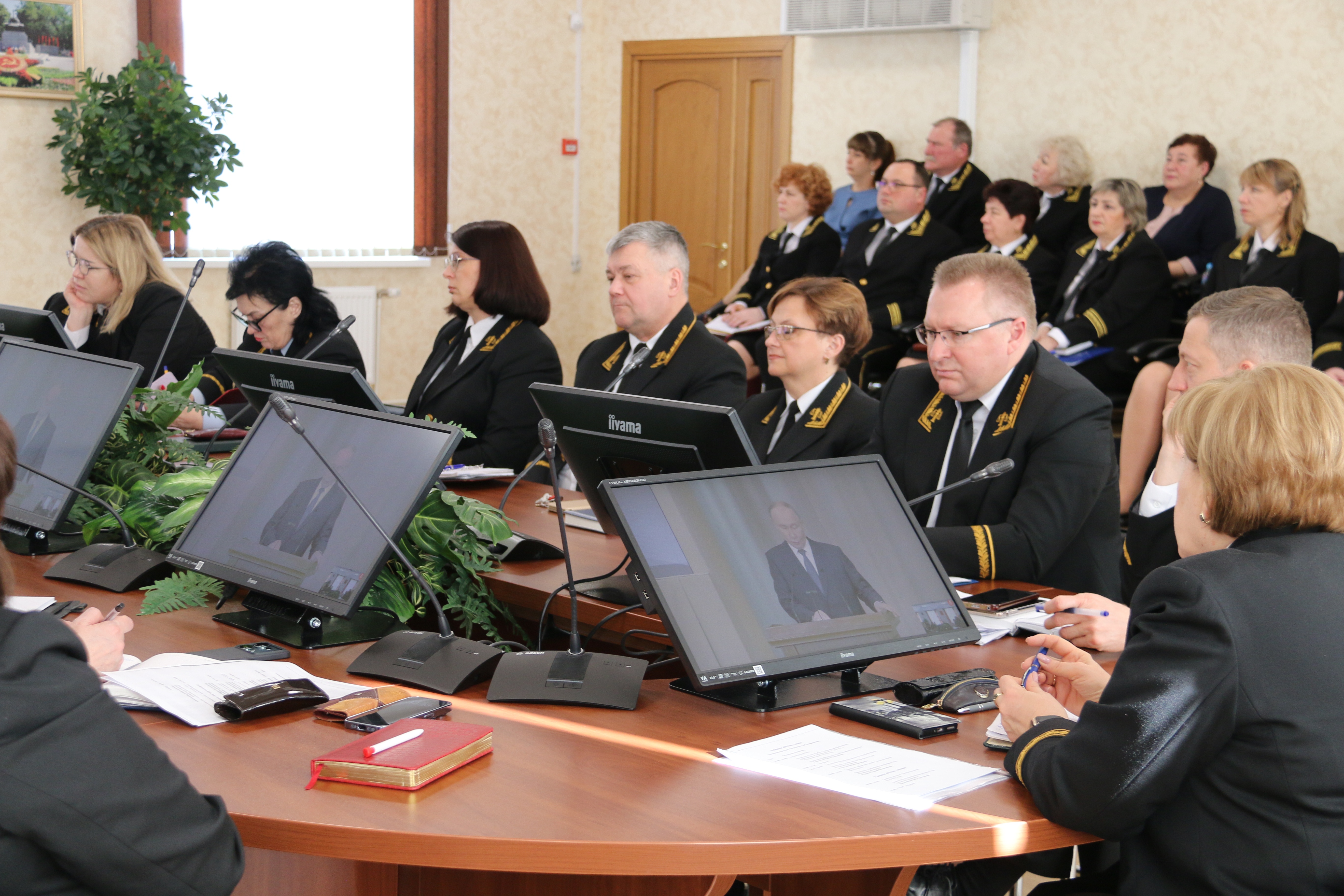 В Орловском областном суде слушают выступление Президента России. Президент, в частности, отметил, что должность судьи «абсолютно обоснованно считают вершиной юридической карьеры любого специалиста, ведь далеко не каждому она по плечу. Потому что призвание судьи– опираясь направо и закон, искать, находить и утверждать справедливость, служить обществу, гражданам и государству, быть беспристрастными арбитрами, принимающими крайне ответственные решения, от которых зависят судьбы людей, работа небольших и стратегически значимых предприятий по всей стране. Это сложный, напряжённый и очень ответственный труд. Тем более в условиях, когда нагрузка на судей растёт. Во всех видах судопроизводства было рассмотрено более 42 миллионов дел, и практически везде было обеспечено качественное и в разумные сроки разрешение судебных дел. По инициативе Верховного Суда принят ряд значимых решений, направленных на дальнейшее повышение качества правосудия, на оптимизацию судебной нагрузки». Президент подчеркнул, что «эффективность судейской власти (для нас с вами это является абсолютно очевидным), доверие к ней со стороны людей зависит от глубоких знаний, компетентности, высокого профессионализма всех, кто занят в судопроизводстве, и прежде всего, конечно, самих судей».