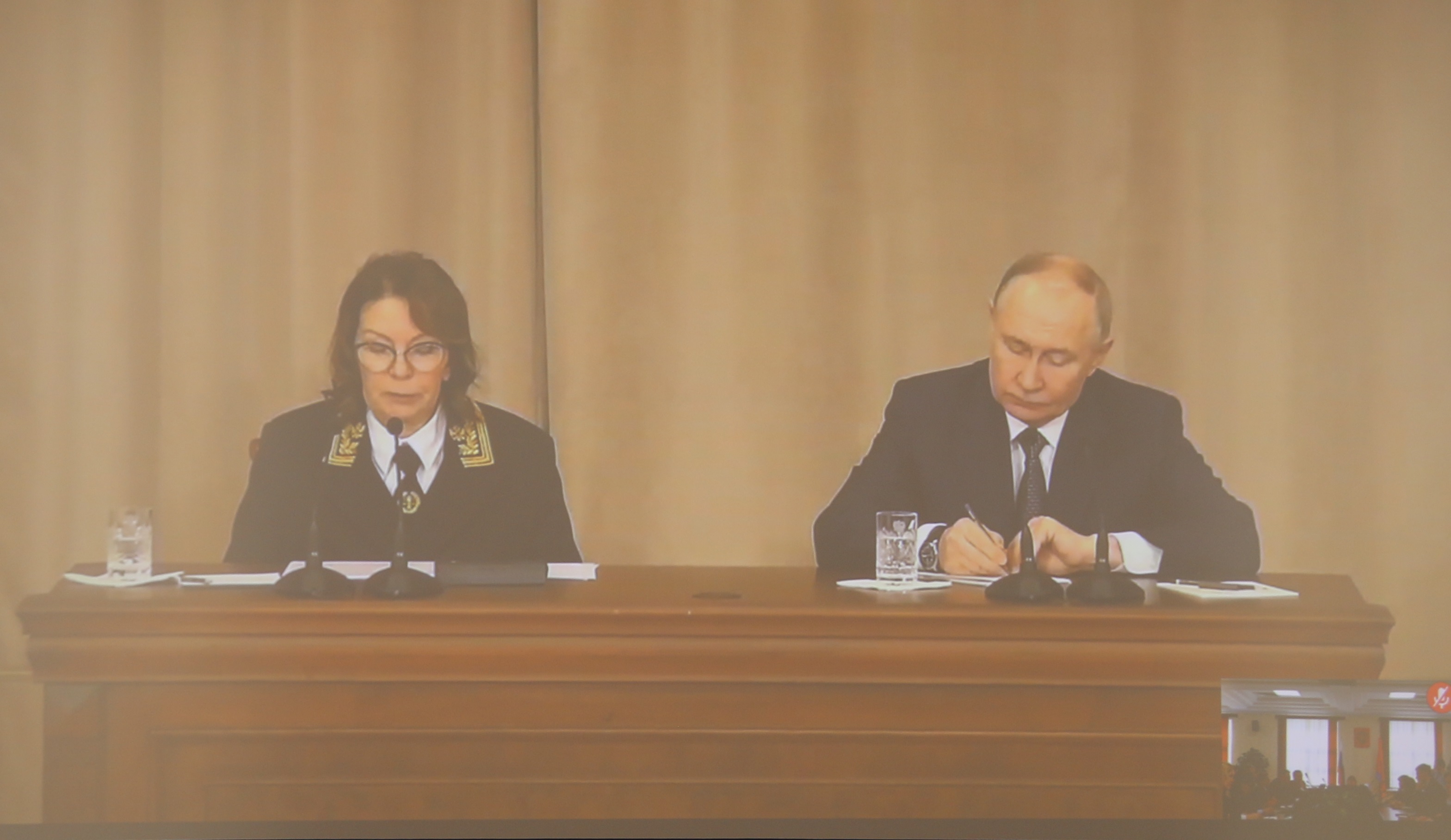 Фото с сайта: http://www.kremlin.ru В работе совещания приняли участие судьи Верховного Cуда, судов общей юрисдикции и арбитражных судов, руководство Судебного департамента при Верховном Суде России, а также представители федеральных органов власти. Руководство и судьи Орловского областного суда, а также председатели и заместители председателей районных судов области приняли участие в ежегодном совещании судей в режиме видео-конференц-связи. Открыл мероприятие Президент Российской Федерации Владимир Владимирович Путин. Глава государства высоко оценил работу Верховного Суда России и всего судейского корпуса.