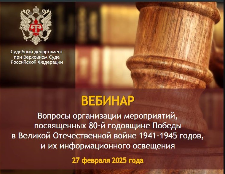 Орловский областной суд принял участие в вебинаре по информационному освещению мероприятий к 80-летию Победы 27 февраля 2025 г. Судебный департамент при Верховном Суде Российской Федерации провел вебинар, на котором обсуждались вопросы организации мероприятий, посвященных 80-й годовщине Победы в Великой Отечественной войне и их информационное освещение. В мероприятии приняли участие государственные гражданские служащие судов, ответственные за взаимодействие со СМИ. Орловский областной суд был представлен помощником председателя суда (пресс-секретарем) Д.А. Ягуповой.